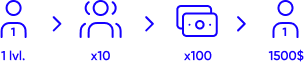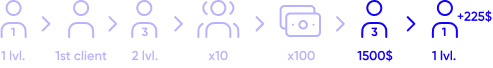 1,725$ कमाएगा। स्तर 3 पार्टनर रेफर किए गए ग्राहक के लिए 1,500$ कमाएगा।